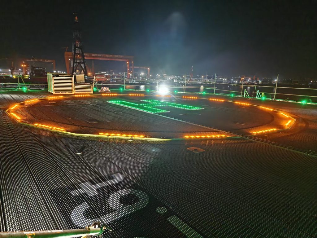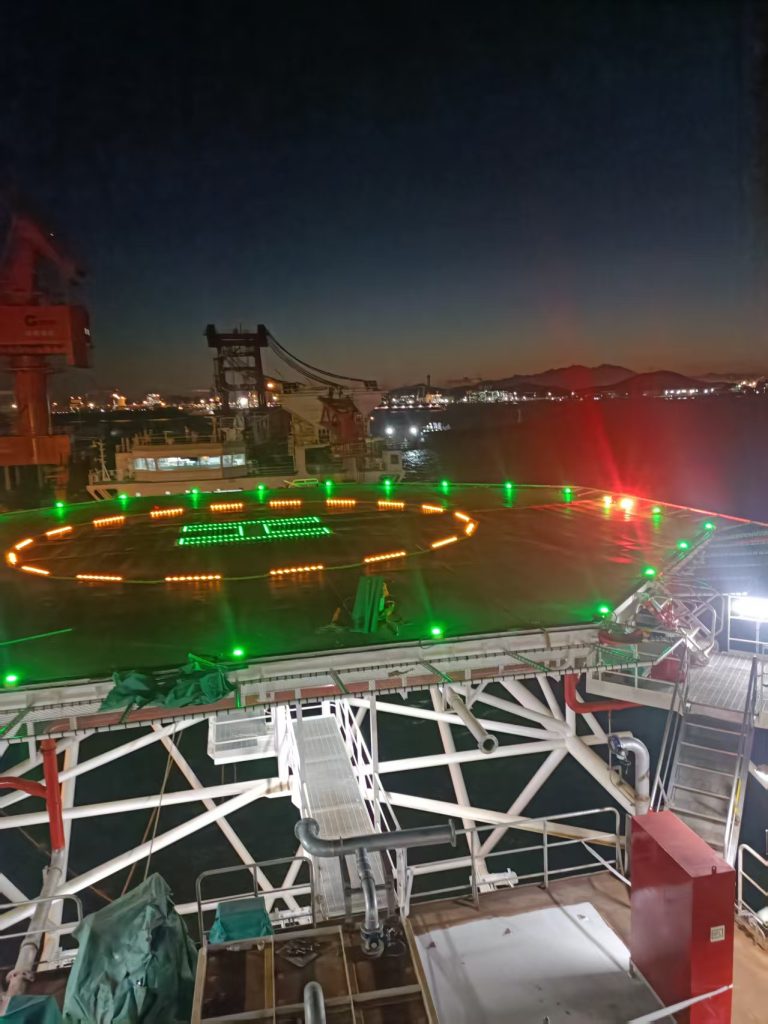 Componentes de diseño de iluminación del sistema: límites de la plataforma, área de aterrizaje, identificación de ubicación e indicación de estado; El sistema puede ser controlado manualmente desde la caja de control en el lugar, también a través del panel de control remoto o estación de control; El sistema puede contar con doble suministro de energía; cuando hay fallo de la energía normal, se puede cambiar directamente al suministro de energía de reserva, al mismo tiempo se emite la señal de alarma; El sistema puede acceder a la señal de peligro de escena de gases tóxicos, incendios y paro de emergencia y con función de advertencia automática. El Sistema de Ayuda de Aterrizaje de la Plataforma de Helicópteros ha pasado la auditoría de CAAi y obtuvo el certificado de CAAi.