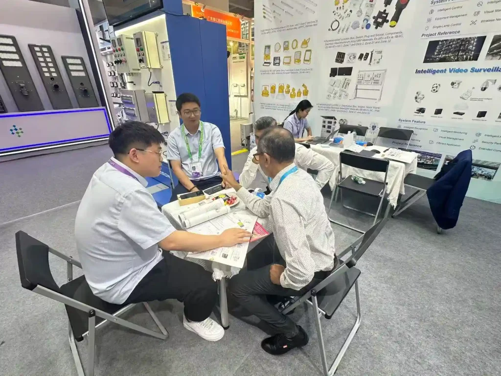 We are located at Hall 14.4, Booths G32-33 & H12-13 at the China Import and Export Fair Complex. On display are our high-quality explosion-proof electrical equipment and industrial lighting solutions, tailored for global industrial markets.